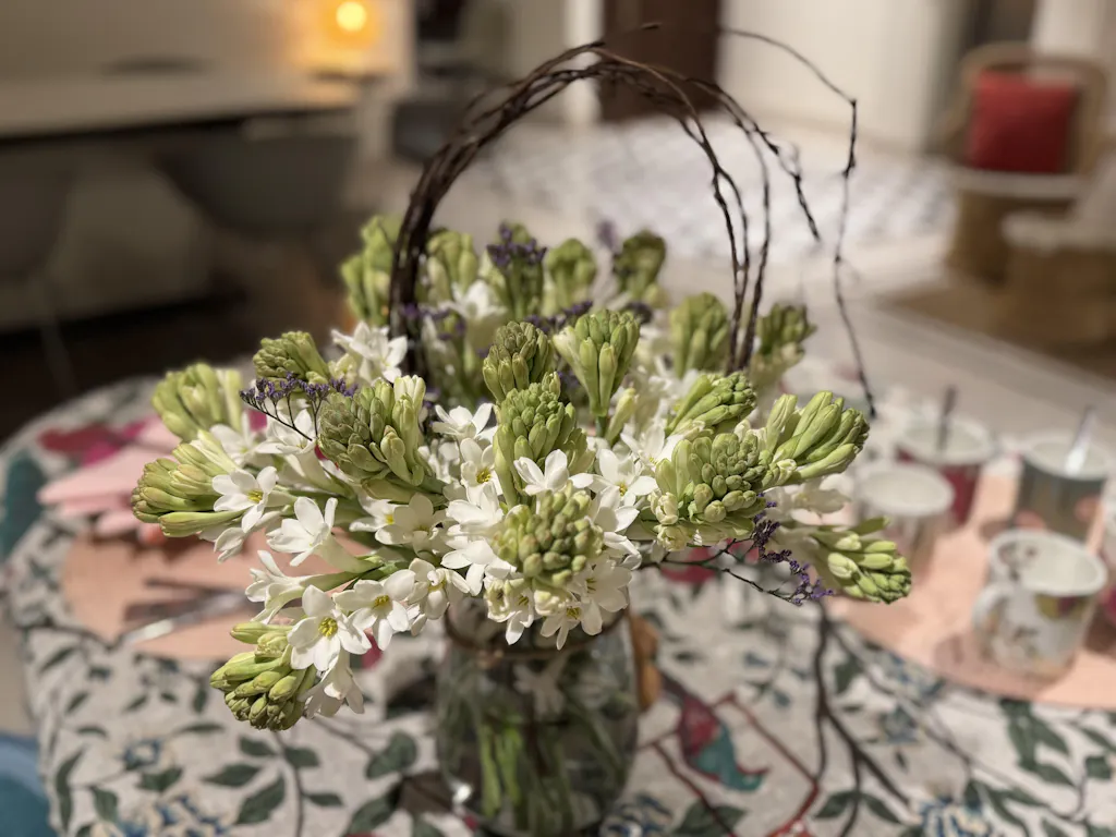 Flowers Used: Fragrant Tuberose and Bargat, set in a 1ML Darling Vase.